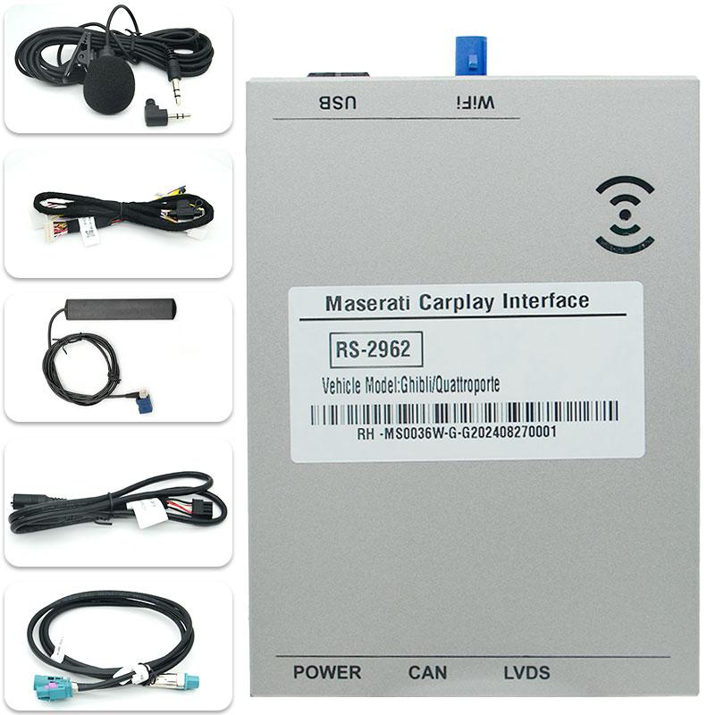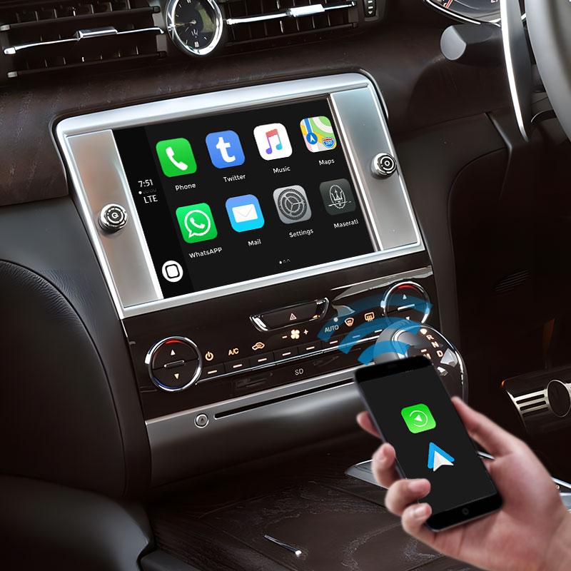 هذه الواجهة اللاسلكية Carplay لنظام Android مناسبة لسيارة Maserati، وتدعم الاقتران عبر البلوتوث ونقل WiFi، والتحكم الكامل في أزرار OEM، كما تدعم أيضًا عكس نظام iOS لجهاز Apple iPhone.