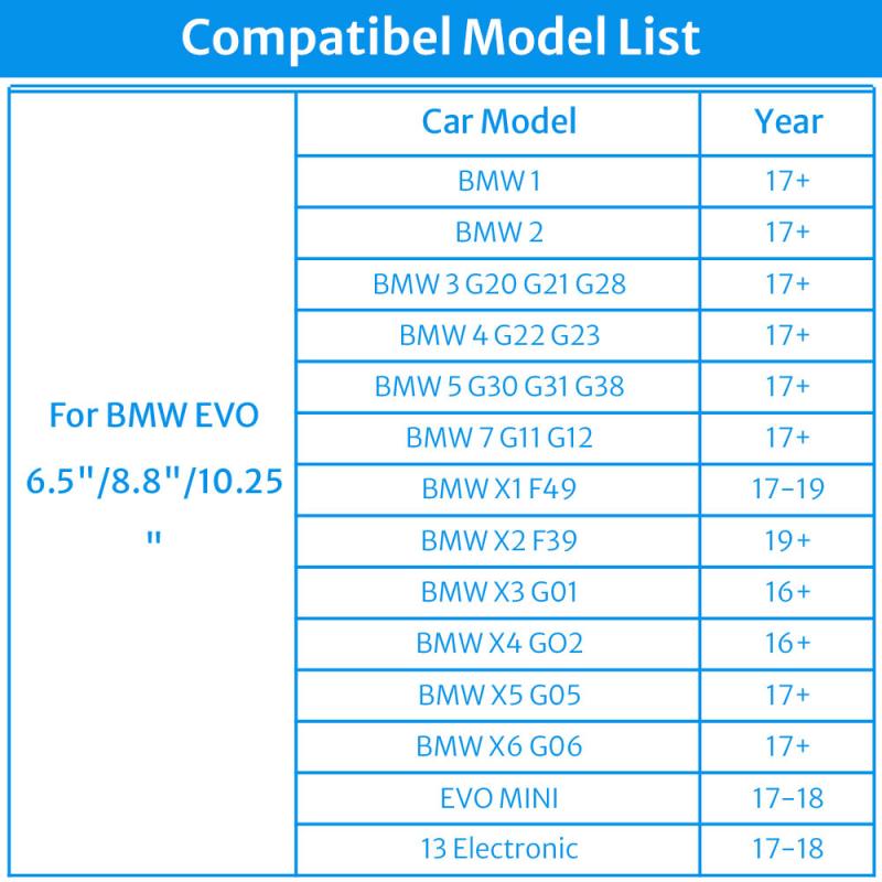 يعمل محول CarPlay اللاسلكي هذا مع Apple CarPlay وAndroid Auto، والشاشة الأكبر لنظام BMW EVO مقاس 6.5/8.8/10.25 بوصة تجعل من السهل الرؤية.